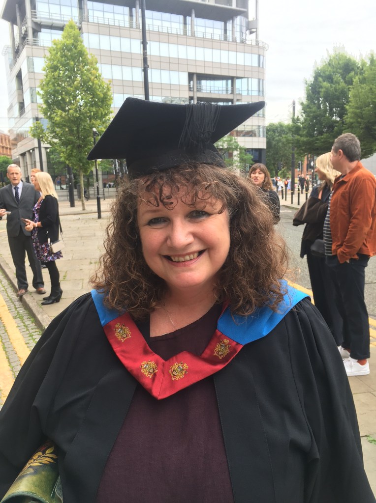Our Deb graduates from Manchester Writing School with an MA in Creative Writing
